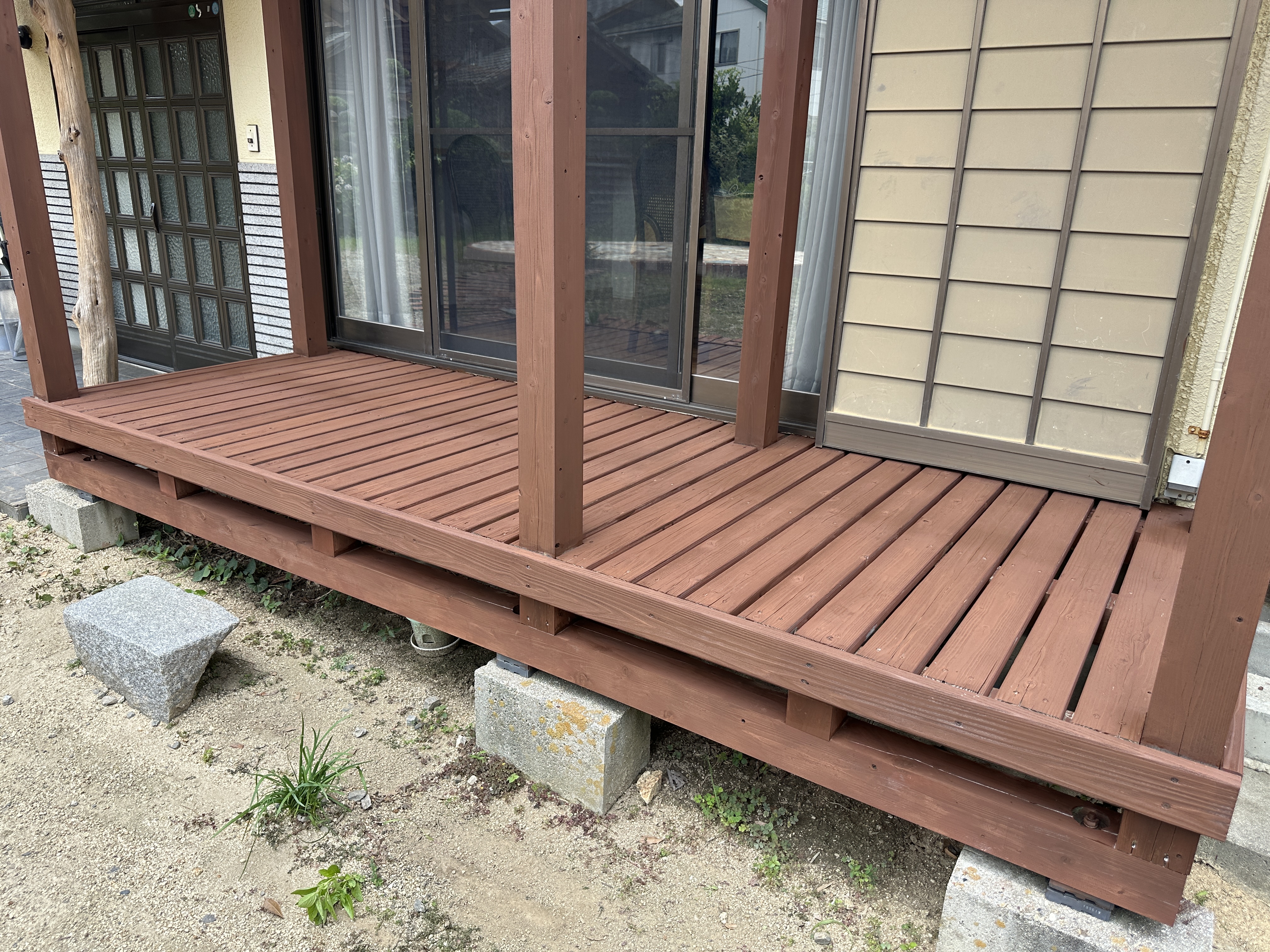 - 屋根付きデッキなら退色速度は大幅に遅い