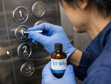 GT-BAa系ガラスコーティング剤は、施工面に透明なガラス被膜を形成し、抗菌・抗ウイルス性能を付与するコーティング技術です。エレベータ押しボタンに施工しても、
